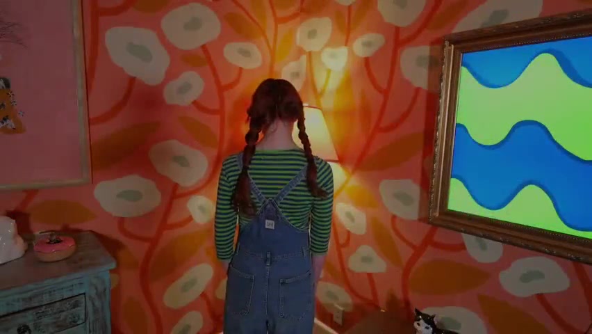 The videos are themed around one of those learning shows. In the first video Olive sings the finger song. In the second video she admonished and is to stand in the corner for punishment.